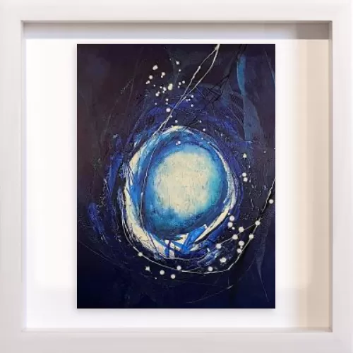 ボックス額の空間にセッティングされた作品は、立体的な余白や光による陰影とともに、作品を特別なものにしてくれます。