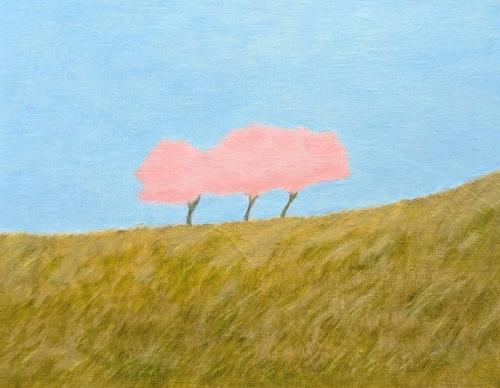 桜祭りへの道すがら、山の斜面に大群から外れて咲いている桜がありました。