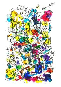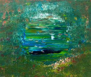 タイトルは創作のはじめにあったものではなく、描き終えた時点で観る側となった私が名付けた「仮のタイトル」です。参考にするのも、答え合わせのように楽しむのも、あるいはまったく無視するのも自由です。抽象表現の色や形に意味を見出す手がかりは、あなたの記憶や経験のなかにしかありません。最終的な作品は観るかたの中で完成すべきものだと考えています。思い思いに想像の翼を羽ばたかせ、作品に新しい解釈を加えていただくことを望みます。