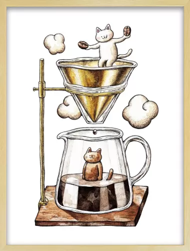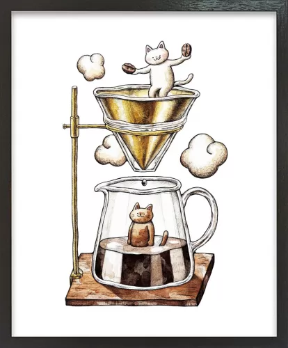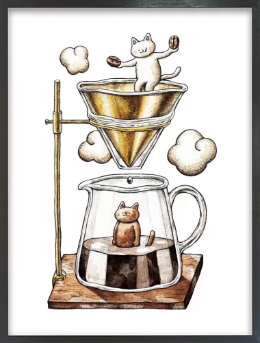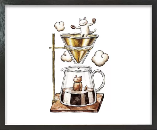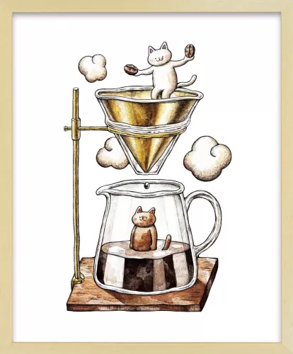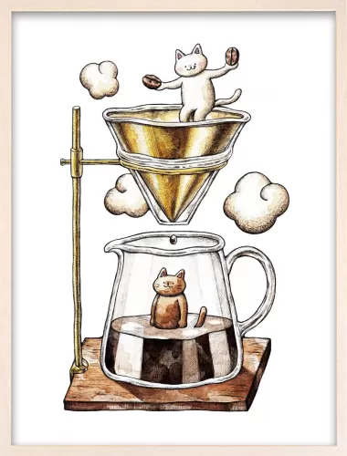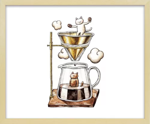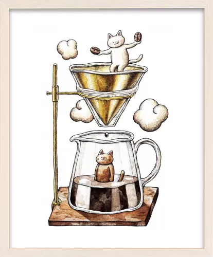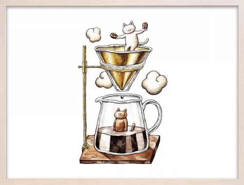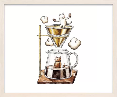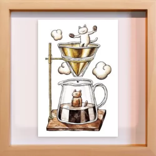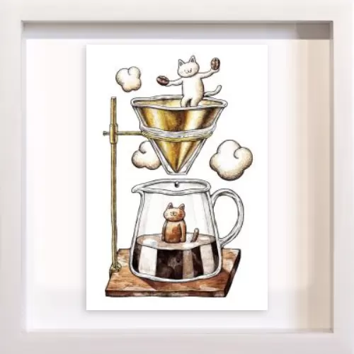 実は二匹とも白猫で、下の猫はコーヒーに浸かって染まっているというお茶目な設定があります。毎日のコーヒータイムに眺めれば、可愛い猫たちが心を和ませてくれるかも。