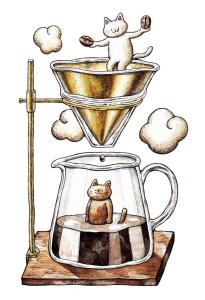 猫好きさんとコーヒー好きさんのために、ブラウンカラーでまとめた大人可愛いイラストを描きました。