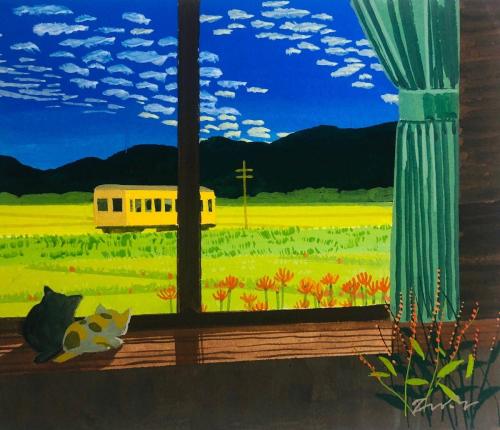 秋の空と窓辺に子猫、穏やか時間をイメージしました