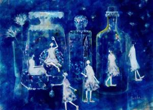 作品は、厚みのあるボックス額内の空間に、浮かしの技法を用いて立体的に配置されています。